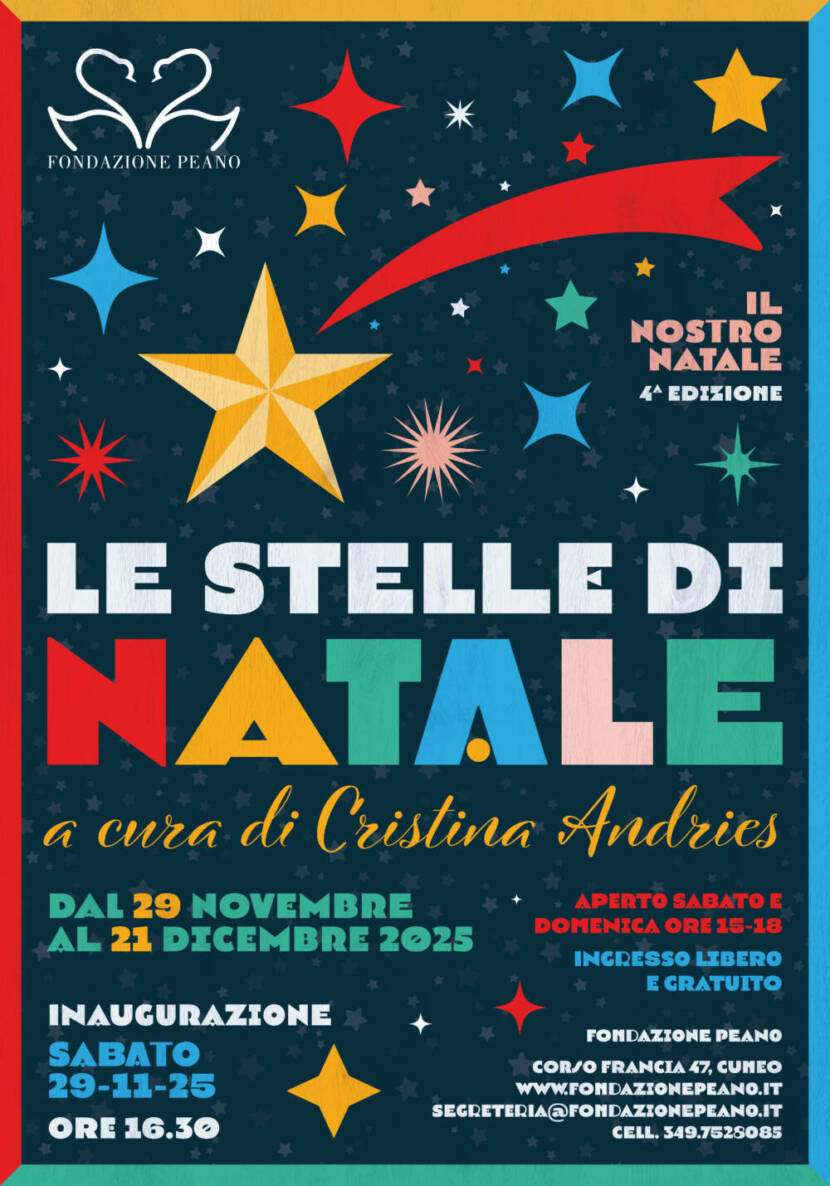 4° ed. della rassegna “Il nostro Natale” a cura di Cristina AndriesInaugurazione sabato 29 novembre ore 16.30 Apertura: sabato e domenica ore 15-18, fino al 21 dicembre 2025Fondazione Peano – C.so Francia 47, Cuneo La quarta edizione della rassegna “Il nostro Natale”, curata da Cristina Andries, ruota attorno al tema “Le stelle di Natale” e […]