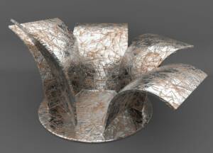 L’opera, composta da cinque elementi incurvati simili a dei petali di un fiore che si dischiude, disposti su base radiale, presenta una elevata qualità estetica e formale, ben evidenziata dalle fotografie allegate alla proposta ma non altrettanto presenti nel bozzetto tridimensionale. Questa discrepanza ha portato la commissione di giuria a valorizzare unicamente la presentazione visiva in cui ogni elemento reca nella sua traiettoria verso il basso lo spunto iconografico delle schiene incurvate dei tanti protagonisti del realismo francese della metà dell’Ottocento ed evoca in questo andamento ripetuto i gesti e il carico dei lavori manuali del passato. Tuttavia la proposta ideativa si caratterizza per una estrema sintesi formale che le dona eleganza e armonia ma resta in una dimensione troppo rarefatta per essere rappresentativa del tema del concorso.