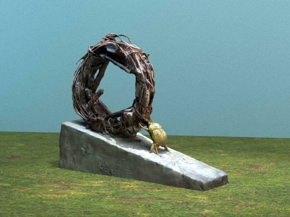 Per la 29° edizione del concorso che ha inteso nello specifico far emergere per sintesi e paradossi, per allegorie e simboli, personali interpretazioni in grado di rappresentare le molteplici sfaccettature dell’idea di lavoro contemporaneo, la commissione giudicatrice sceglie la proposta progettuale di Matteo Marovino perché prende in esame, in modo originale, il sistema imprenditoriale italiano costituito da una miriade di piccole aziende che sono il portato di una storia di sapienze artigianali, di esperienze e conoscenze sedimentate nelle famiglie e tramandate da generazioni. L’opera pone l’accento sullo specifico carattere e qualità del saper produrre in Italia con le microimprese, in una dimensione attuale di forte competizione con le gigantesche multinazionali, anonime e oscure che, con le loro smisurate forze economiche, gradualmente sopprimono la diversità delle piccole aziende italiane. La scultura proposta è risultata vincente per la soluzione formale ed espressiva che ricorre alla raffigurazione dello scarabeo stercorario, considerato in riferimento alle sue dimensioni, l’animale con la maggiore forza al mondo. La sua figura tradotta nel bronzo del linguaggio plastico si staglia di fronte ad una ruota meccanica che pare voler schiacciare ogni cosa trovi sul cammino, compreso lo stesso piccolo artefice. La scultura è di indubbio interesse nella sua effettiva realizzazione poiché è di impatto, di immediata presa e palesa un interrogativo: il coraggio dello spirito verrà premiato o soccomberà nell’ineluttabile percorso della modernità?